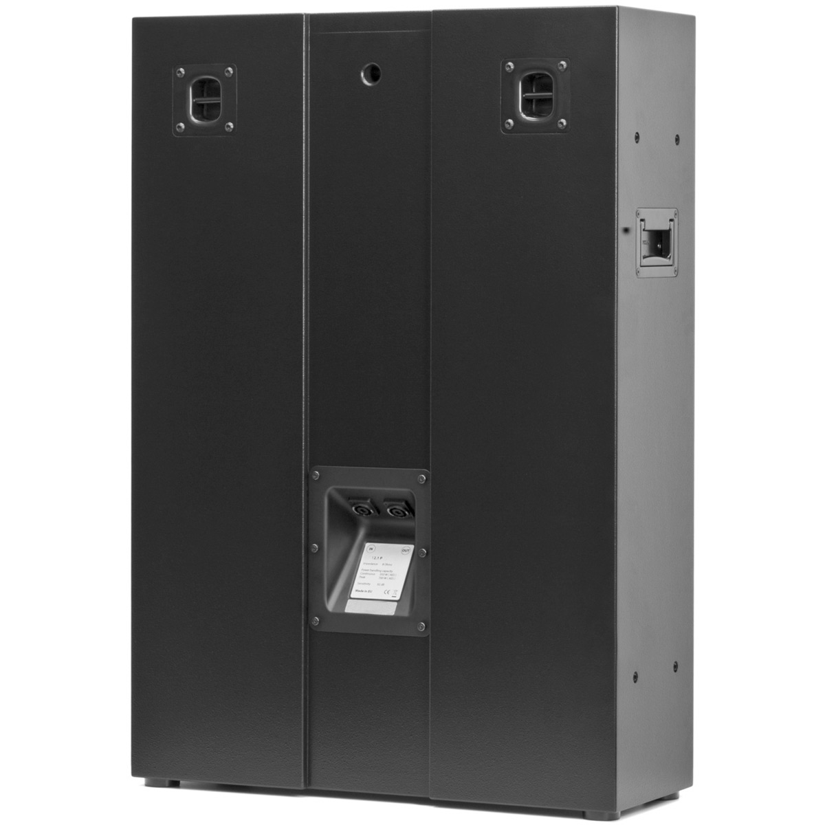 Deux poignées de sécurité en acier permettent de transporter et de déplacer facilement le 12.1P. Tous les panneaux du caisson sont boulonnés entre eux pour une rigidité sans faille. Pour la connexion, vous avez le choix entre des borniers poussoirs plaqués or ou des Neutrik Speakon. Toujours pour faciliter l’installation, les borniers sont disponibles en face avant et en face arrière du caisson avec un tube pour faire passer le câble haut-parleur. La profondeur de 23 cm seulement rend ce caisson extrêmement simple à placer dans n’importe quelle pièce home cinema.
