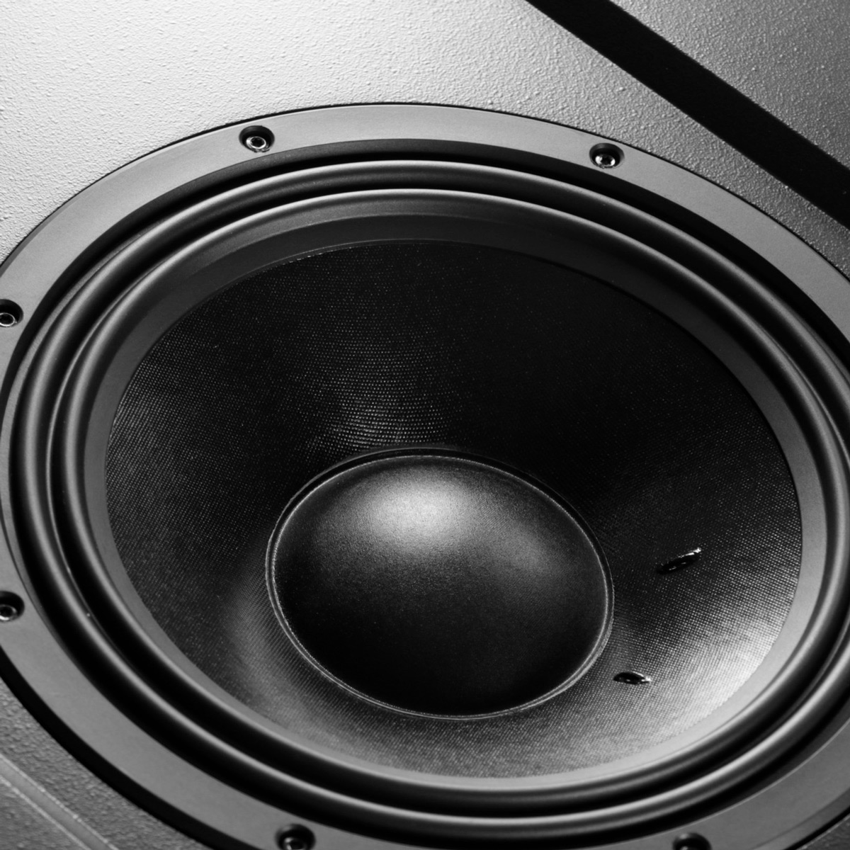 Un caisson de basse passif, avec haut-parleur de 30 cm, destiné aux petites pièces. Installation derrière un écran ou encastré dans un mur.
