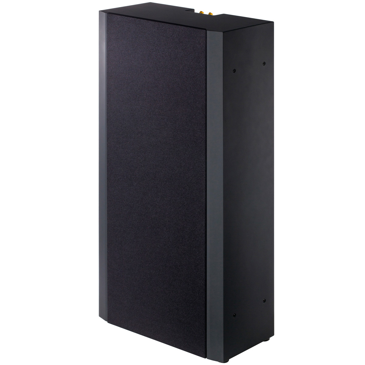 L’enceinte 15.1HS est un grand modèle 3 voies pour les salles home cinema mesurant 10 à 20 mètres de profondeur. Elle sera complétée par les 8.1HS en surround et les caissons 15.1P ou 15.2P. Tous les éléments du coffret sont boulonnés entre eux. Les attaches sont intégrées pour une fixation murale via deux vis. Une rainure est prévue à l’arrière pour faire passer le câble haut-parleur sans surépaisseur. Le bornier plaqué or prend place dans un renfoncement. La 15.1HS reçoit une peinture noire texturée.