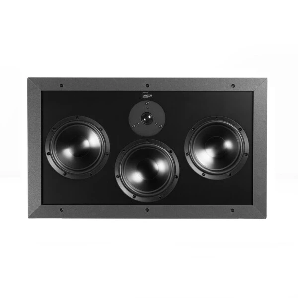 Une enceinte centrale encastrable à large bande passante jusque dans les plus basses fréquences grâce à la présence de deux radiateurs passifs. Elle utilise les mêmes haut-parleurs que les autres enceintes Lyngdorf.