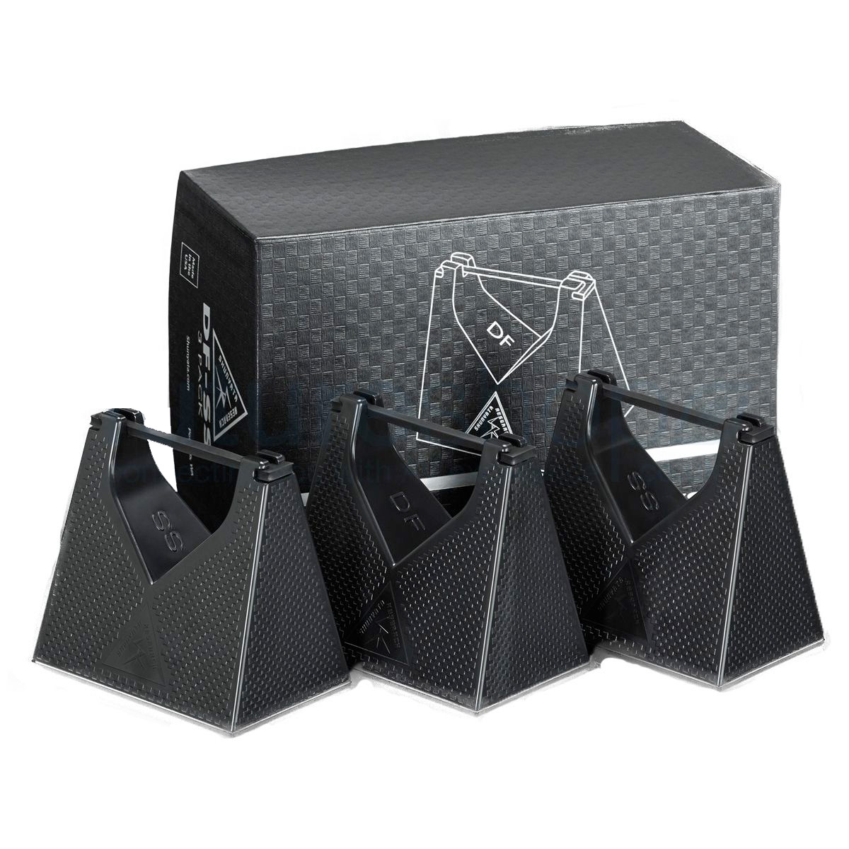 Le support DF-SS (Dark Field Suspension System) améliore la technologie originale brevetée de Caelin Gabriel en ajoutant deux innovations de conception importantes. En plus du matériau de neutralisation du champ statique utilisé dans le DFE d’origine, le DF-SS intègre deux formes d’isolement qui réduisent le transfert de vibration du sol vers le câble. Le DF-SS intègre un pont de suspension absorbant l’énergie acceptant une grande variété de câbles. La bande polymère a la capacité unique de dissiper l’énergie vibratoire, l’empêchant d’être couplée entre le sol et le câble. La deuxième innovation provient du composé granulaire qui remplit la base du DF-SS. Il dissipe l’énergie vibratoire qui autrement se transmettrait au câble, provoquant une forme subtile de distorsion du signal.