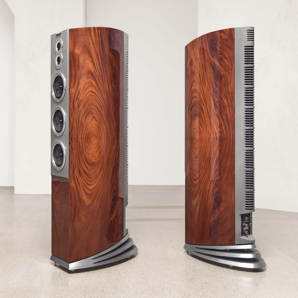 Les finitions proposées : Acajou Africain Crotch, Érable Moucheté du Canada et Noyer Italien Burl bénéficient toutes d’un somptueux laquage piano qui met en valeur la richesse des essences et confère aux enceintes une présence visuelle à la hauteur de leur excellence acoustique.