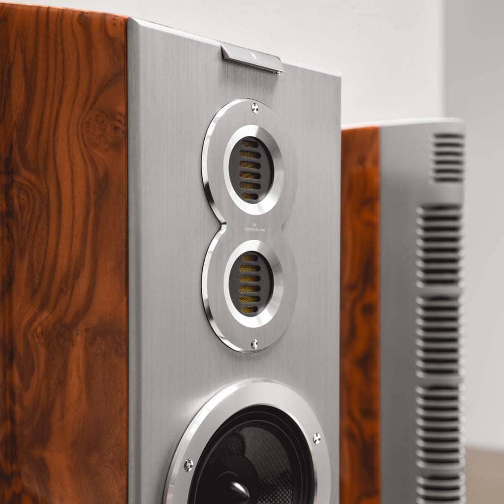 L’imposant ensemble de huit haut-parleurs de graves positionnés à l’arrière équivaut à un woofer de 38 cm. Il garantit une extension profonde des basses, parfaitement maîtrisée, avec un relief et une ampleur saisissants.