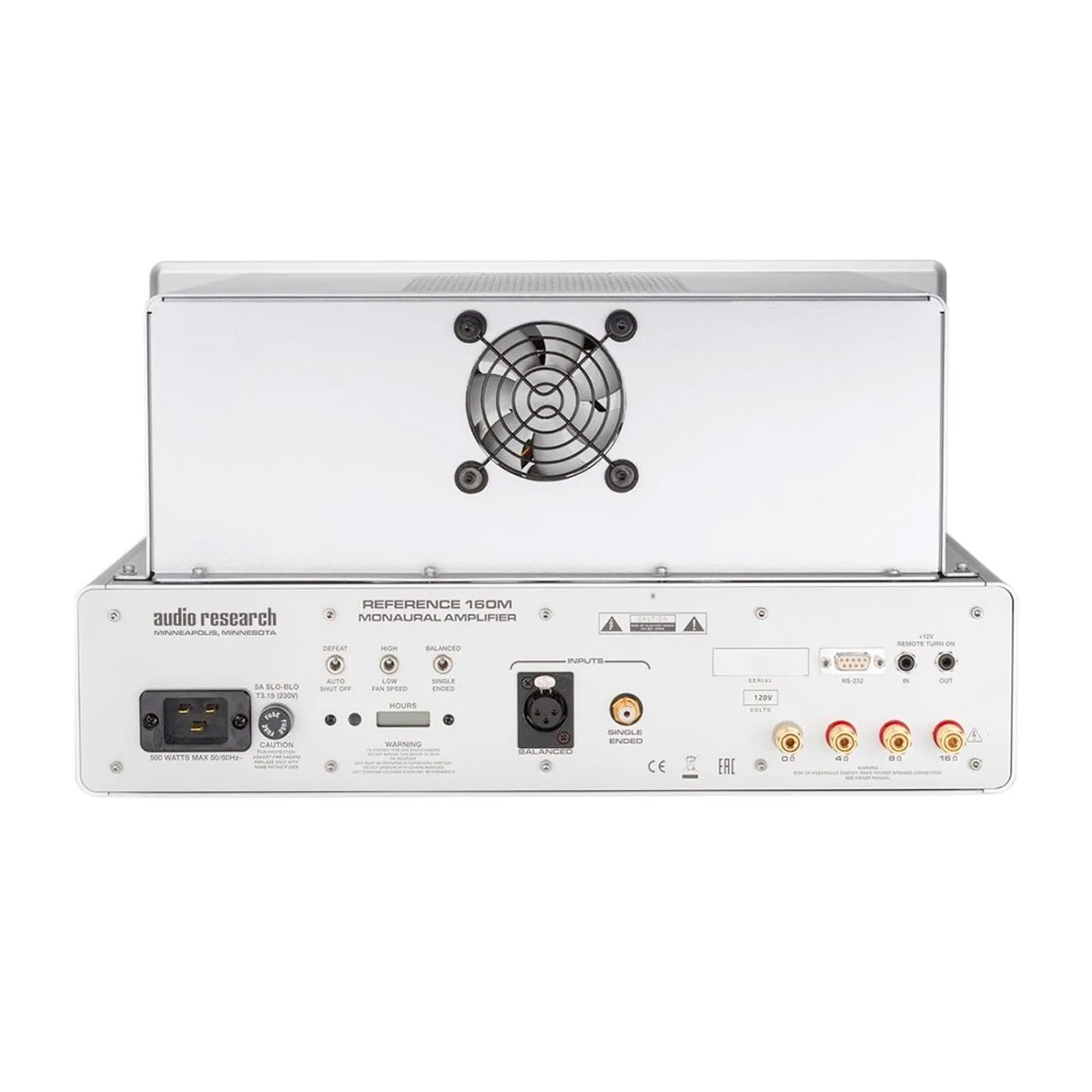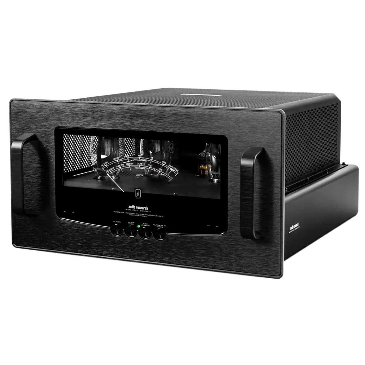 Audio Research voulait créer un amplificateur d’un nouveau style qui compléterait le préamplificateur REF6 et utilisant le GhostMeter™ offrant une vue sur les tubes KT150. Il intègre également une construction innovante à double couche avec des inscriptions gravées jouant le rôle de vumètre de puissance intégré. Elles sont rétro-éclairées via des LED cachées et la luminosité est réglable. Le REF 160M comprend un capot sur mesure avec un ventilateur intégré pour évacuer la chaleur générée par les quatre tubes de sortie KT150 et les deux tubes 6H30. La régulation de puissance assure une efficacité, une stabilité et une fiabilité accrues. L’étage d’alimentation utilise un tout nouveau transformateur et des capacités de stockage. Il fournit un courant extrêmement élevé à la demande pour passer les pics transitoires, offrir une dynamique intense, et délivrer avec autorité des basses profondes.