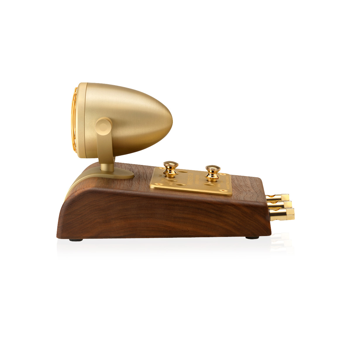 - Finition : noyer et aluminium anodisé doré