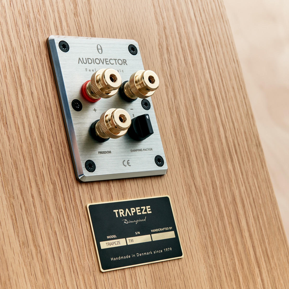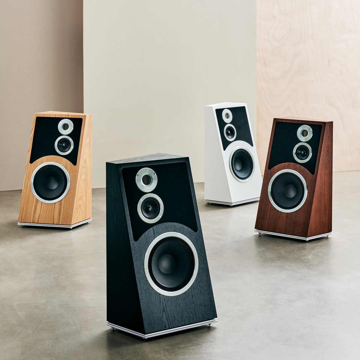 L’enceinte Trapeze Ri est un hommage à sa devancière sortie en 1979. Elle a seulement été mise à jour afin d’intégrer de nouvelles solutions techniques encore plus innovantes. Cette enceinte trois voies à poser au sol comprend un woofer de 30 cm, un médium de 13 cm et un tweeter AMT. Son objectif est d’offrir une réponse en fréquence et en puissance la plus proche de l’idéal dans toutes les pièces d’écoute. Son format spécifique en forme de trapèze permet d’orienter les haut-parleurs, de les aligner parfaitement en termes de phase afin d’utiliser des coupures à 6 dB/octave et de supprimer les résonances internes. Tout cela est associé à un double support de découplage mécanique comprenant deux couches d’aluminium séparées par des billes de carbone et d’acier et reposant sur des pointes en aluminium. L’Audiovector Trapeze Ri est proposée dans quatre placages de bois naturel et peut être commandée sur mesure dans n’importe quelle couleur laquée.